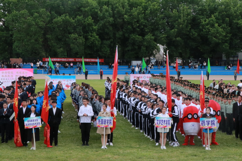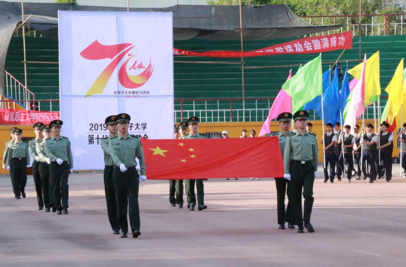2019年5月16日,石河子大学第十八届田径运动会在中区田径场举行。校领导陈旭东、童军茂、李孝光、中国人民解放军陆军驻石河子大学国防生选培办副主任赵鹏林大校,及部分学院、直附属单位和职能部门负责人等出席运动会开幕式。