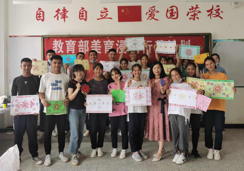 此前,今年“五一”,由必赢565net官网副院长闫青带队前往第三师图木舒克市看望慰问实习学生,并就教育部美育浸润行动计划社团建设工作给予指导。期间,共支持四十四团中学、五十一团中学筹建合唱、口风琴、书画、纸艺、模戳印花等8个社团。闫青嘱咐负责实习工作的老师要配齐社团所需各类材料,尽快开展面向全体学生丰富多彩的常态化美育实践活动,同时对实习生志愿服务南疆教育的选择表示肯定。