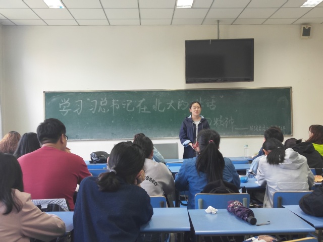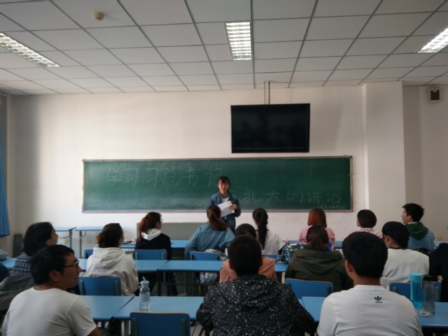活动过程中,各团支部对习总书记在北京大学师生座谈会上的讲话内容进行了深入学习,共计17名各班学生代表结合学习内容发表了学习心得。汉语言20161班的米热阿依同学在发言中提到:党和国家给我们提供了最优质的教育,学校给了我们大学生实现远大理想的舞台,我们身为大学生,更应该珍惜这来之不易的机会,抓住机遇,立下坚定志向,并为之努力奋斗。民语20171班的樊广兴同学说:我们要克服在学习中存在的苦闷迷茫,坚定自己做好伟大事业的信心和毅力。作为大学生的我们,应当努力学习科学文化知识,做一名优秀的社会主义接班人和建设者。同学们普遍表示,正处于大学时期的我们不能浪费青春,应该珍惜当下的日子,心怀家国和人民,争做“家事国事天下事,事事关心”的有心人。正如总书记在北大考察时所说:我们要励志,立鸿鹄志,做奋斗者!我们更要求真,求真学问,练真本领!我们还要力行,知行合一,做实干家。