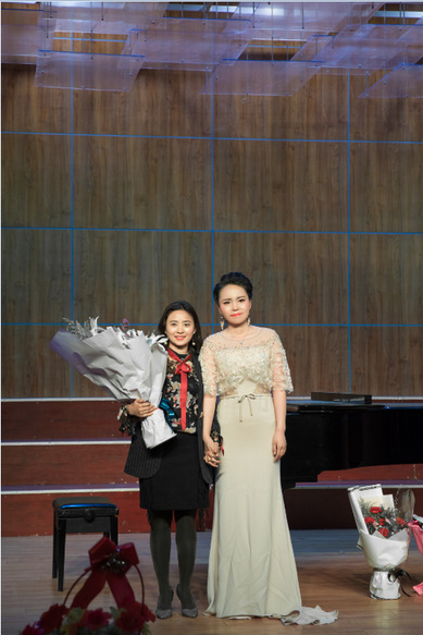 音乐会上陈小青背依钢琴,吟唱感情色彩浓郁,戏剧性强烈。抒情和富有穿透力的歌喉伴随着优雅的舞台剧动作,动静相宜,唱腔婉转,全场观众被生动的表演吸引,深深沉浸在艺术享受之中。陈小青共演绎了十一首中国民族声乐作品,她独到的音乐处理技艺显示了熟练扎实的声乐基本功力,也充分展示了我系声乐教学水平。
