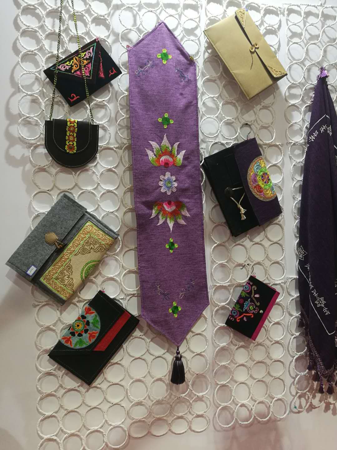 本次参展的作品主要为哈萨克毡绣和布绣类、陶瓷类生活用品和艺术品,共有30余件,为必赢官网人文社科研究重点基地新疆非物质文化遗产研究中心承办的文化和旅游部、教育部、人力资源社会保障部组织的中国非物质文化遗产传承人群研修研习培训计划第一期、第二期、第四期的优秀教学成果,产品门类涉及家居软装,皮包、毡包、布包,床品,日用陶瓷,艺术陶瓷等多个门类。